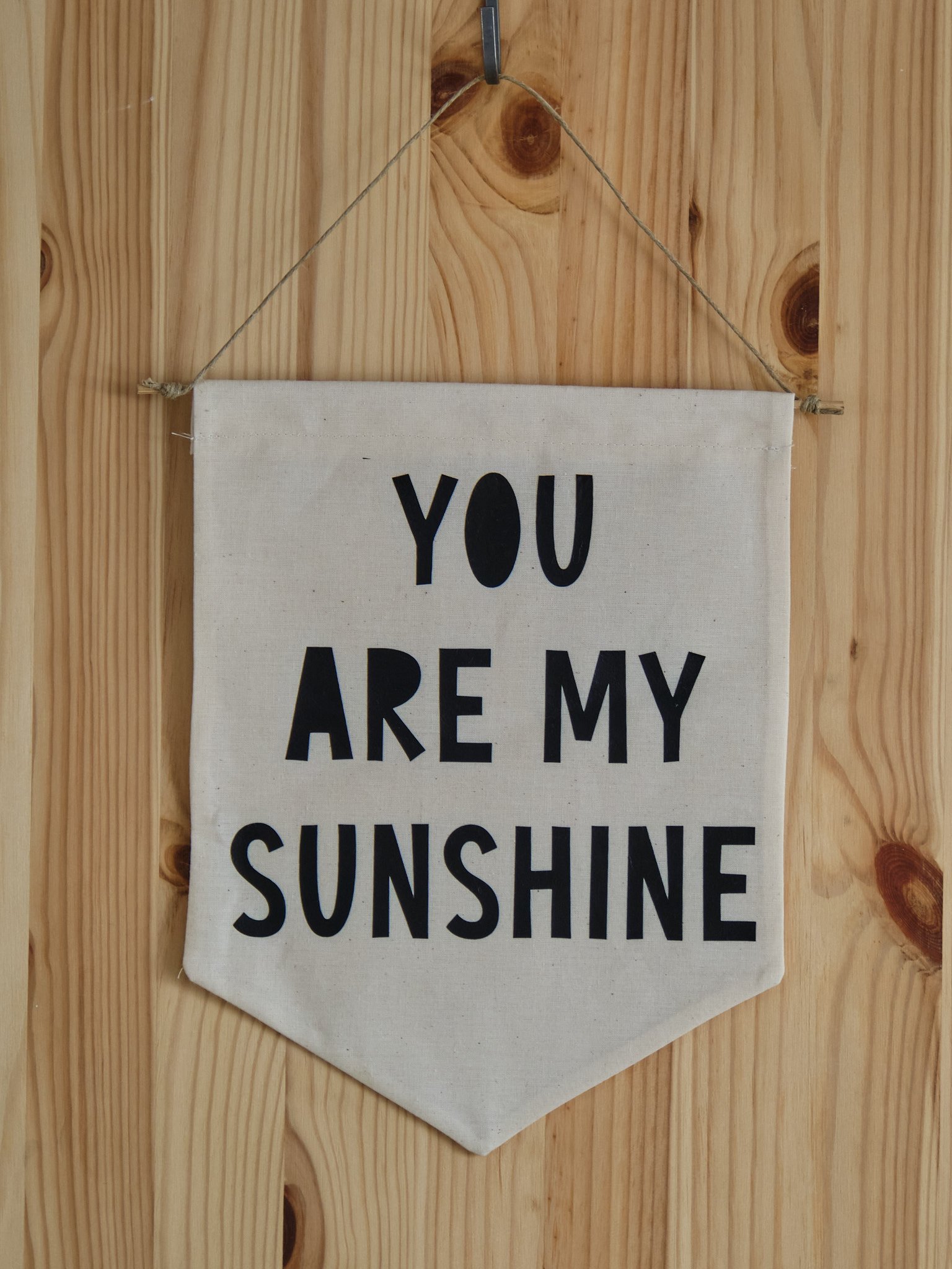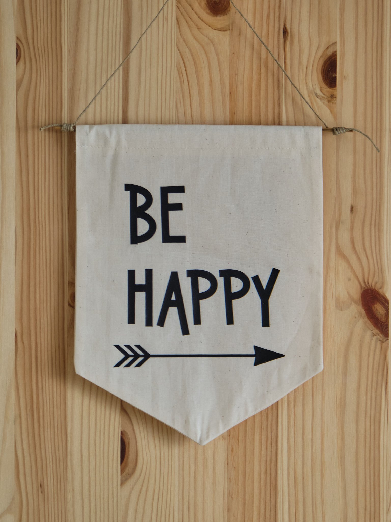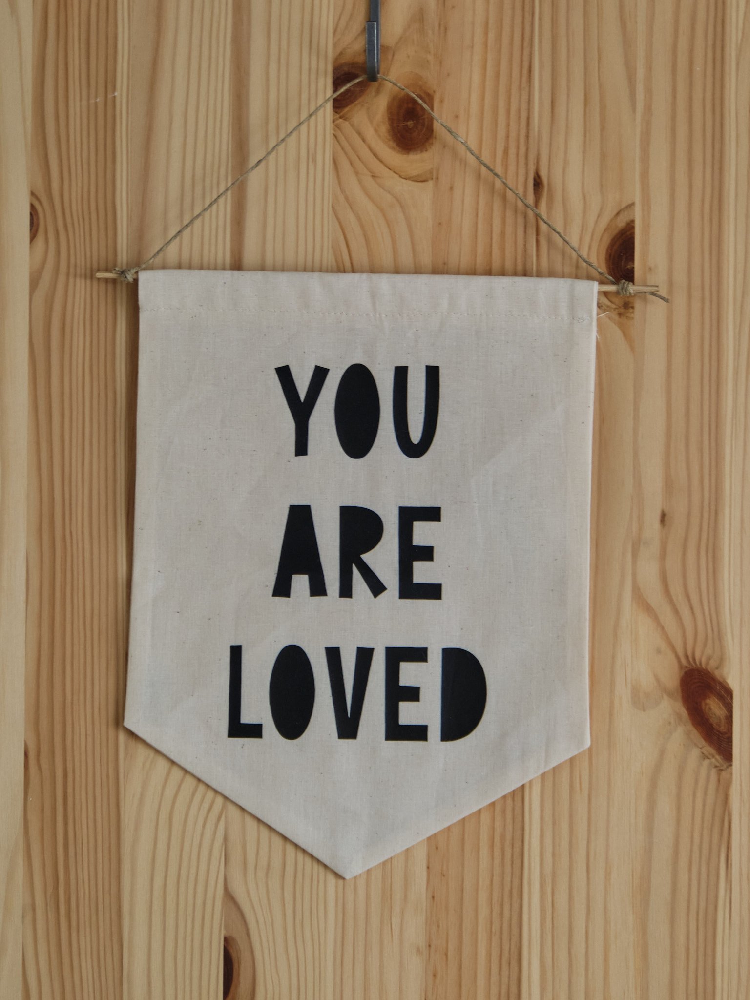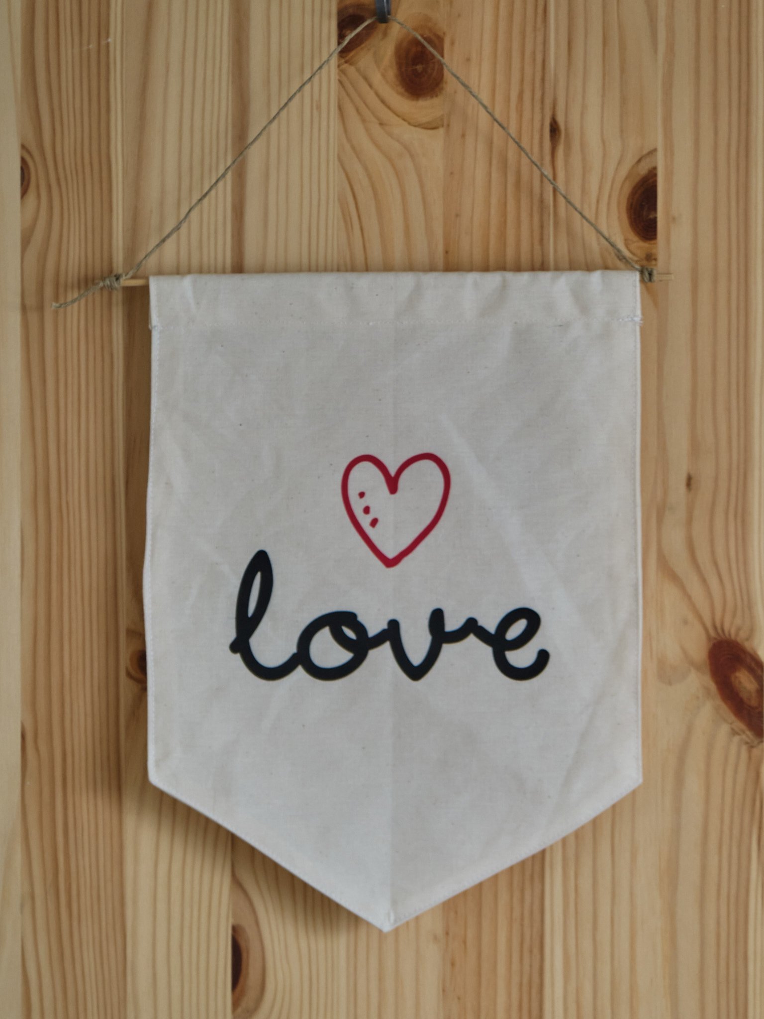 Bandeirola em pano cru com cerca de 20cm de largura, com mensagem estampada em vinil. Pronta a pendurar.