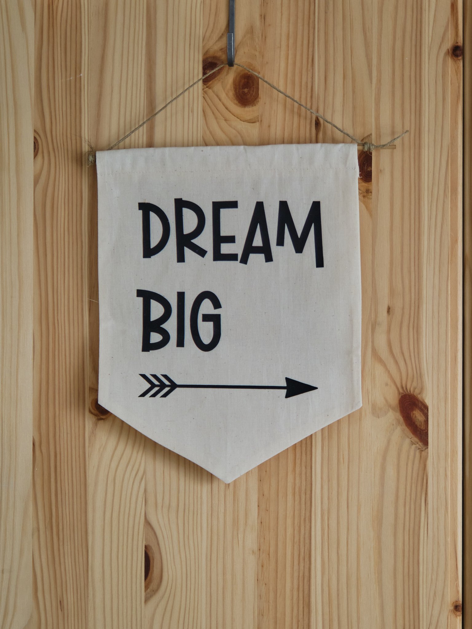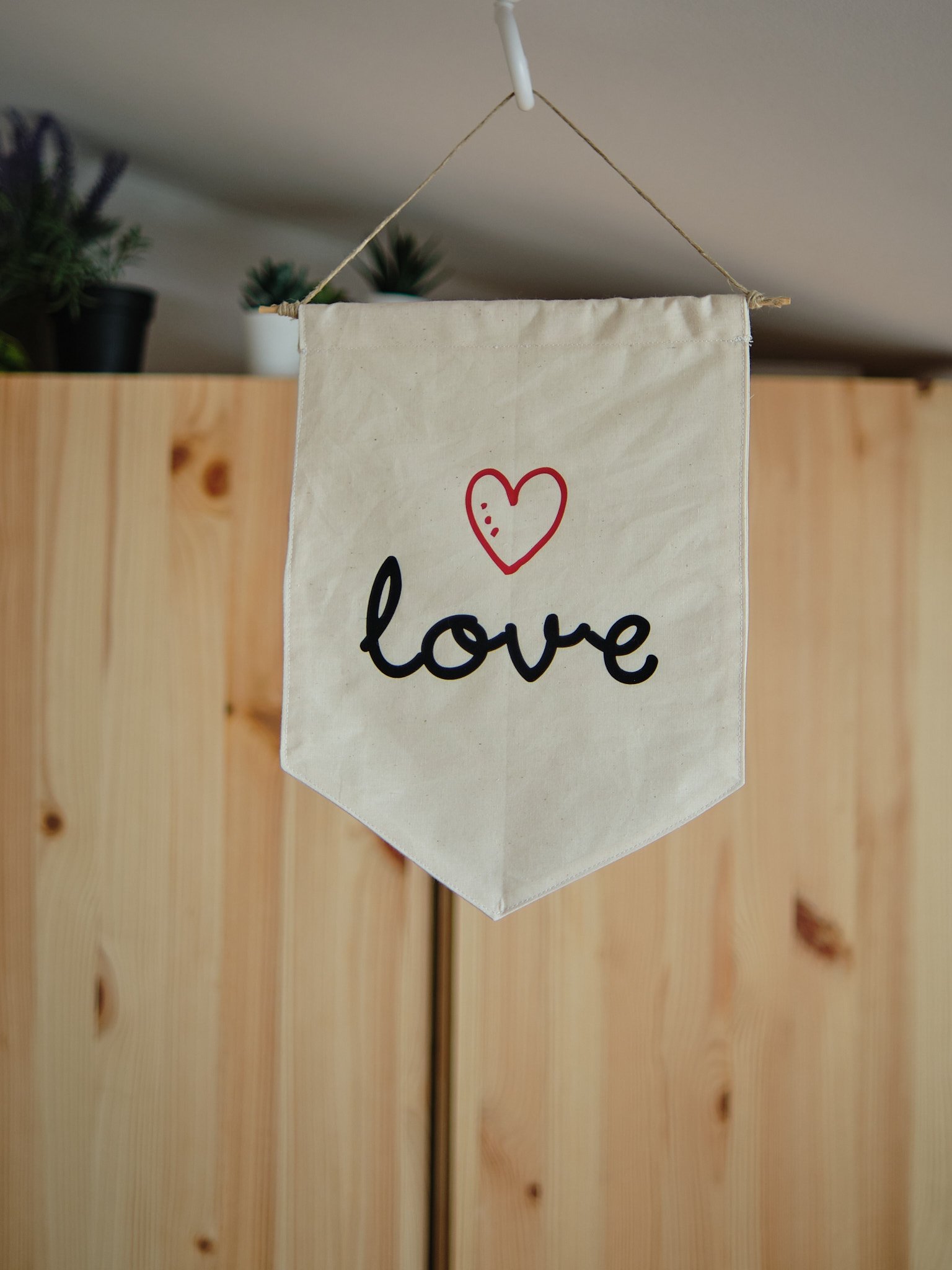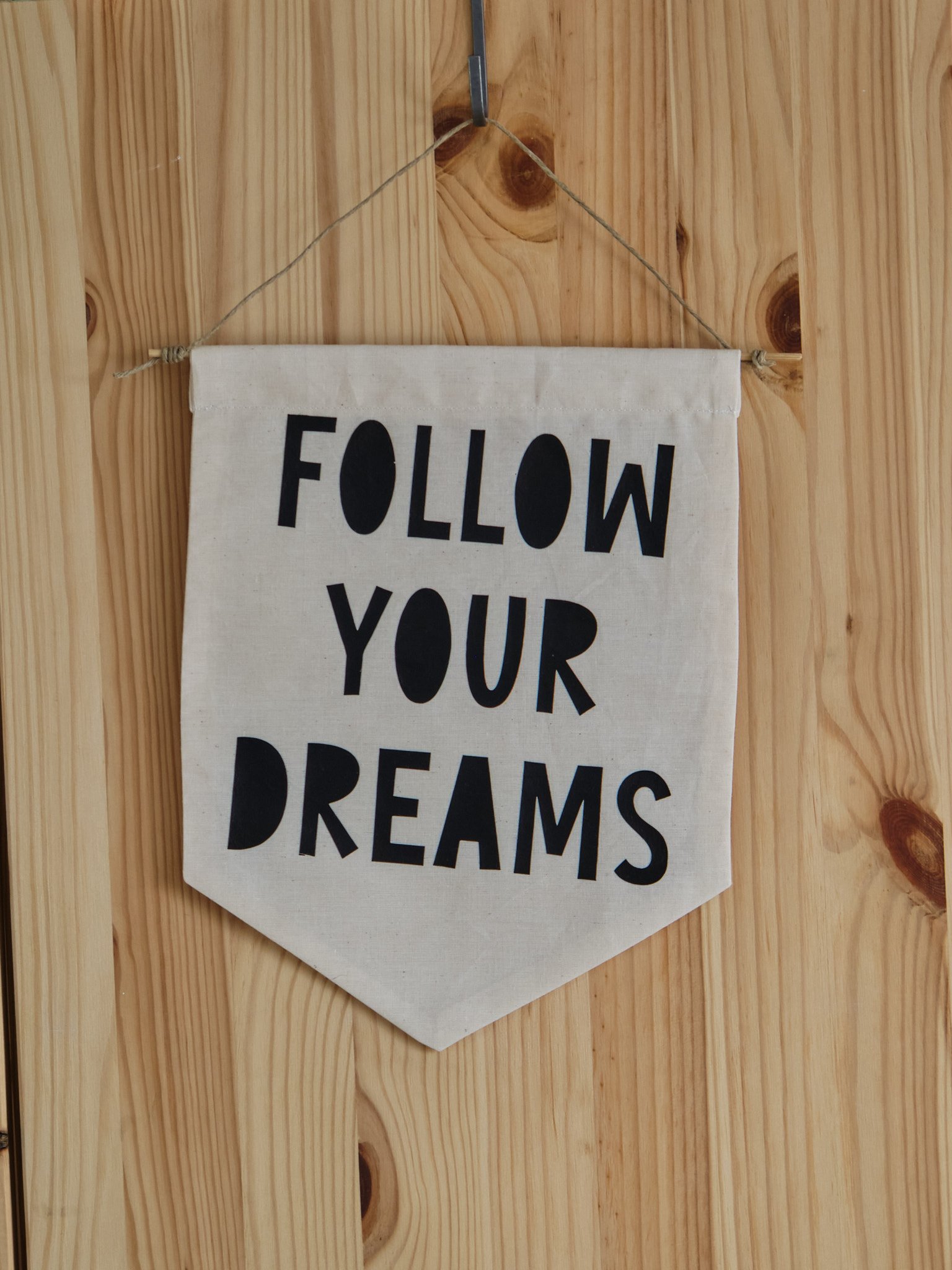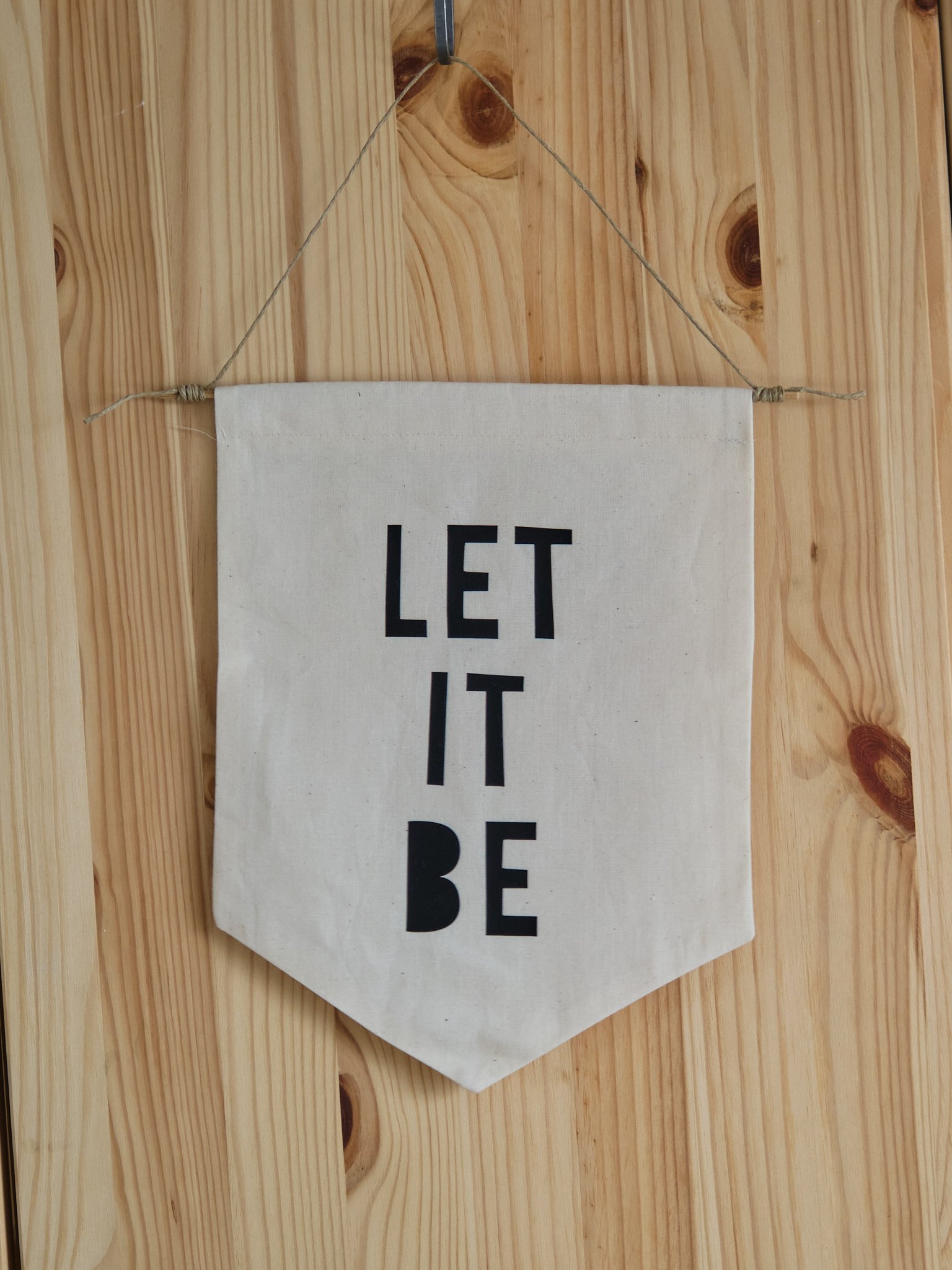 Bandeirola em pano cru com cerca de 20cm de largura, com mensagem estampada em vinil. Pronta a pendurar.