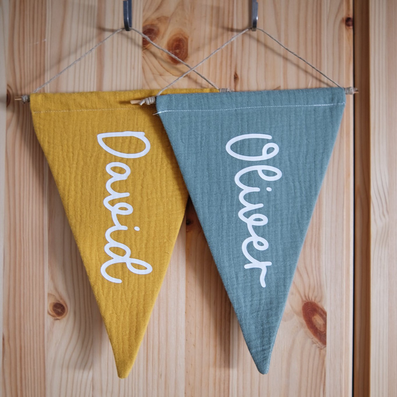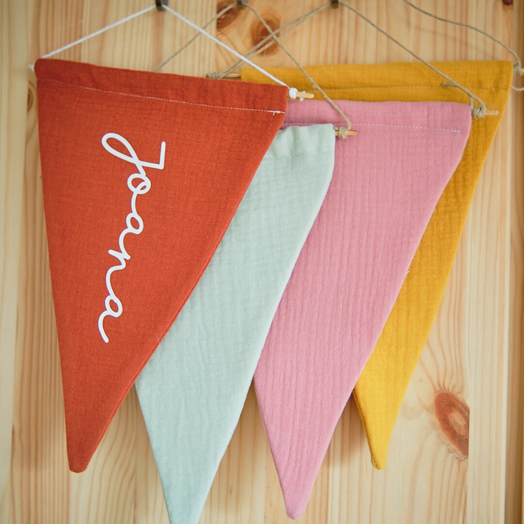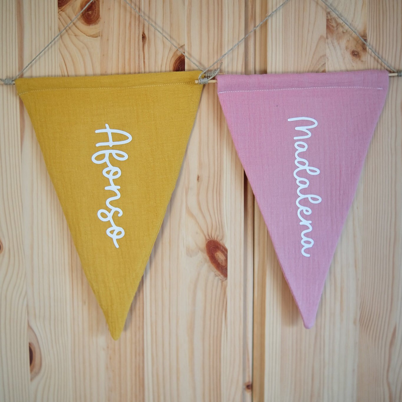 Decore e personalize o quarto dos seus filhos com uma bandeirola colorida com o nome.