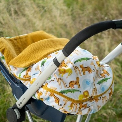 A forra universal para ovinho da Maria Café é adequada a qualquer época do ano. É feita em tecido 100% algodão, sendo por isso fresca e confortável. O tapa-pernas destacável OPCIONAL tem o interior em manta térmica, sendo por isso a protecção ideal nos dias mais frescos e ventosos. Quando retira o tapa-pernas fica com a forra base que é fresca e adequada aos dias mais quentes.