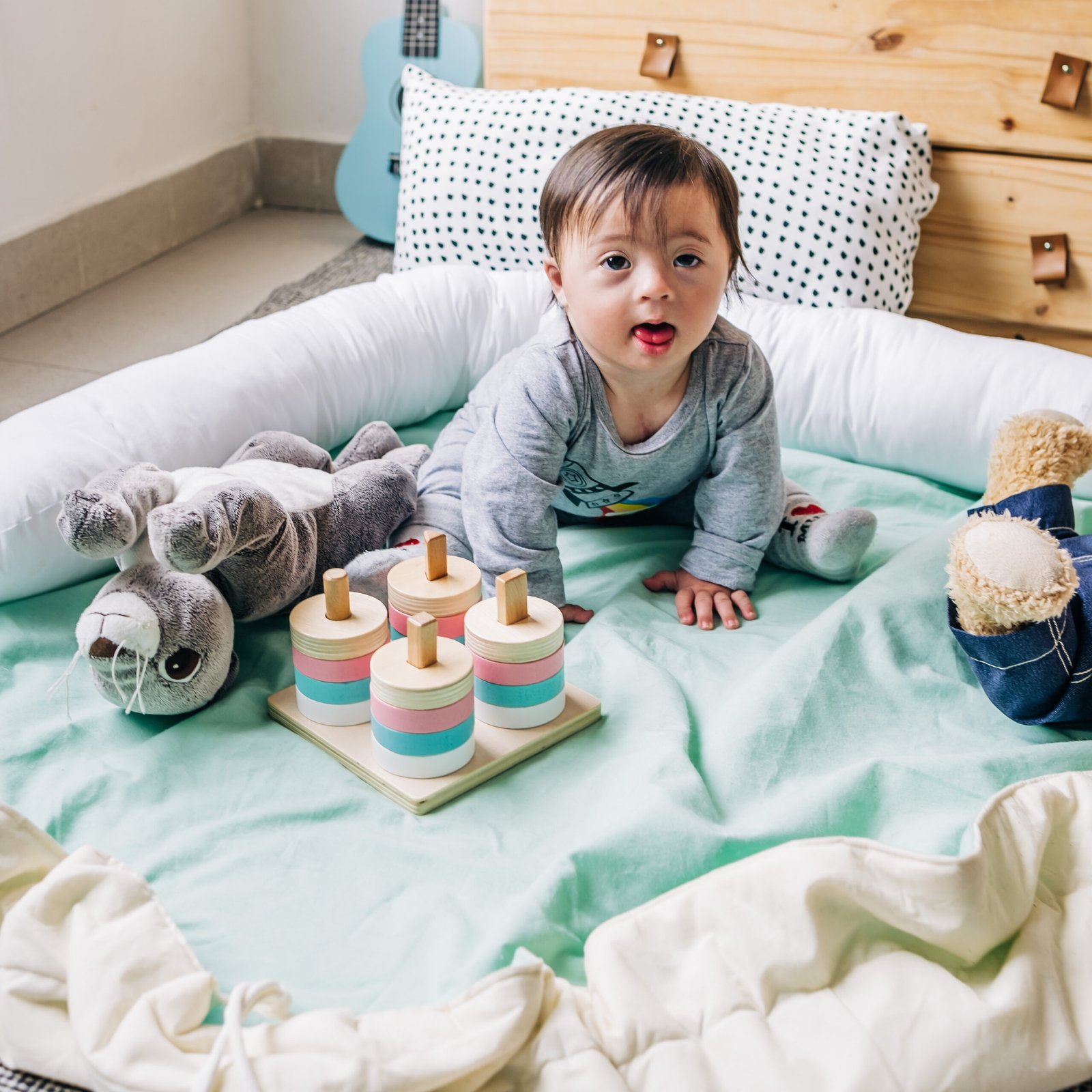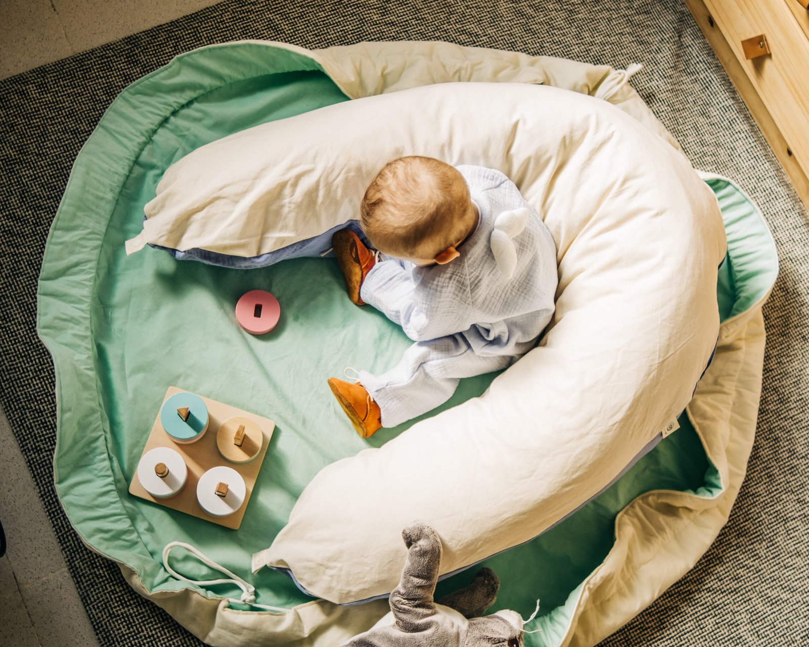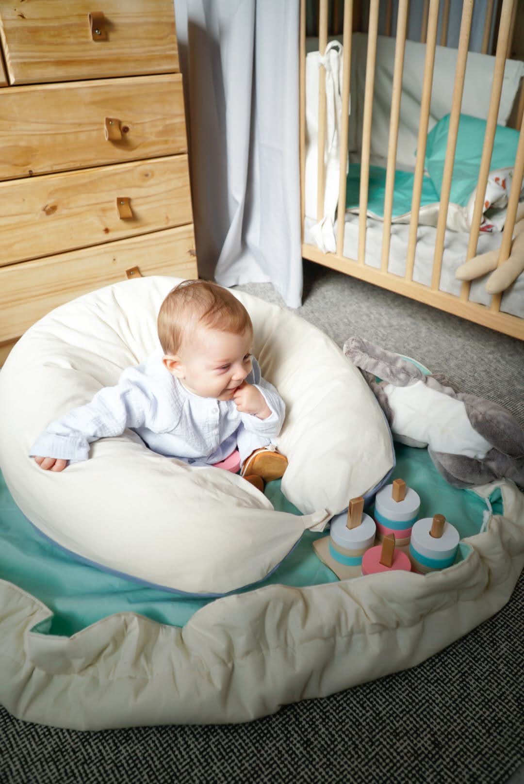 Ideal para brincar no chão, o PlayMat Maria Café é ao mesmo tempo um tapete acolchoado e um saco para guardar os brinquedos. O bebé vai adorar brincar no PlayMat e a mãe vai adorar a facilidade com que os brinquedos voltam a estar arrumados no final da brincadeira. Basta puxar os cordões e pendurar o saco.