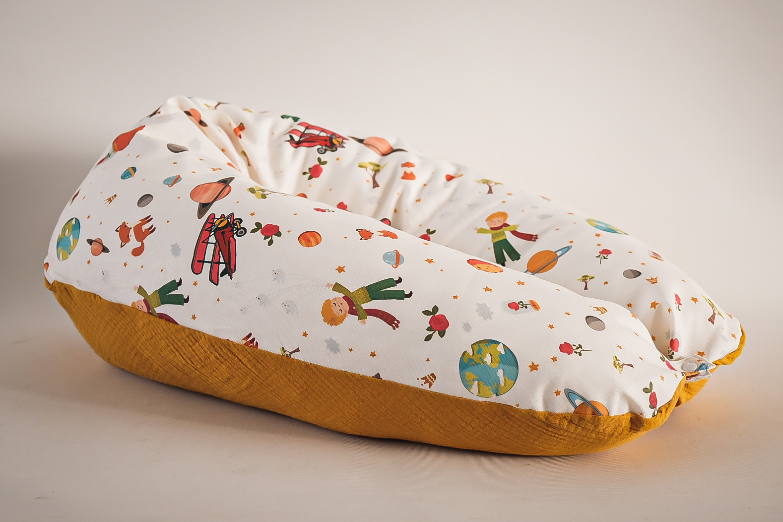 Quando o bebé começa a sentar-se a almofada grande serve de apoio à volta do bebé, para o ajudar a manter uma posição correcta.