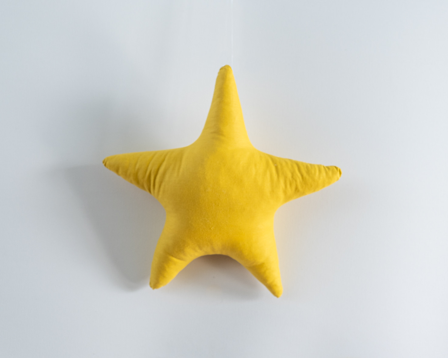 • Almofada amarela em forma de estrela pendurada na parede