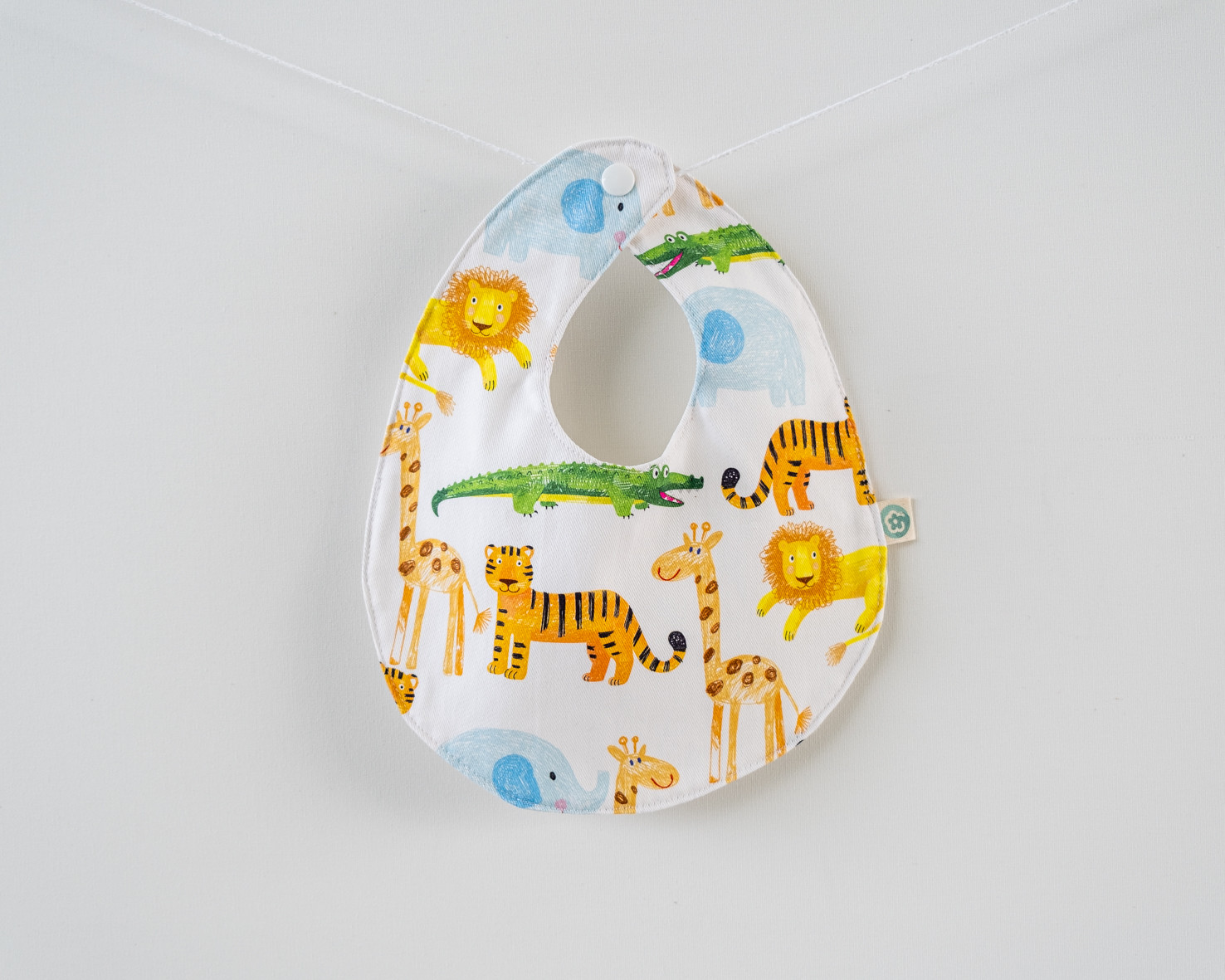 • Babete de tecido estampado com animais coloridos