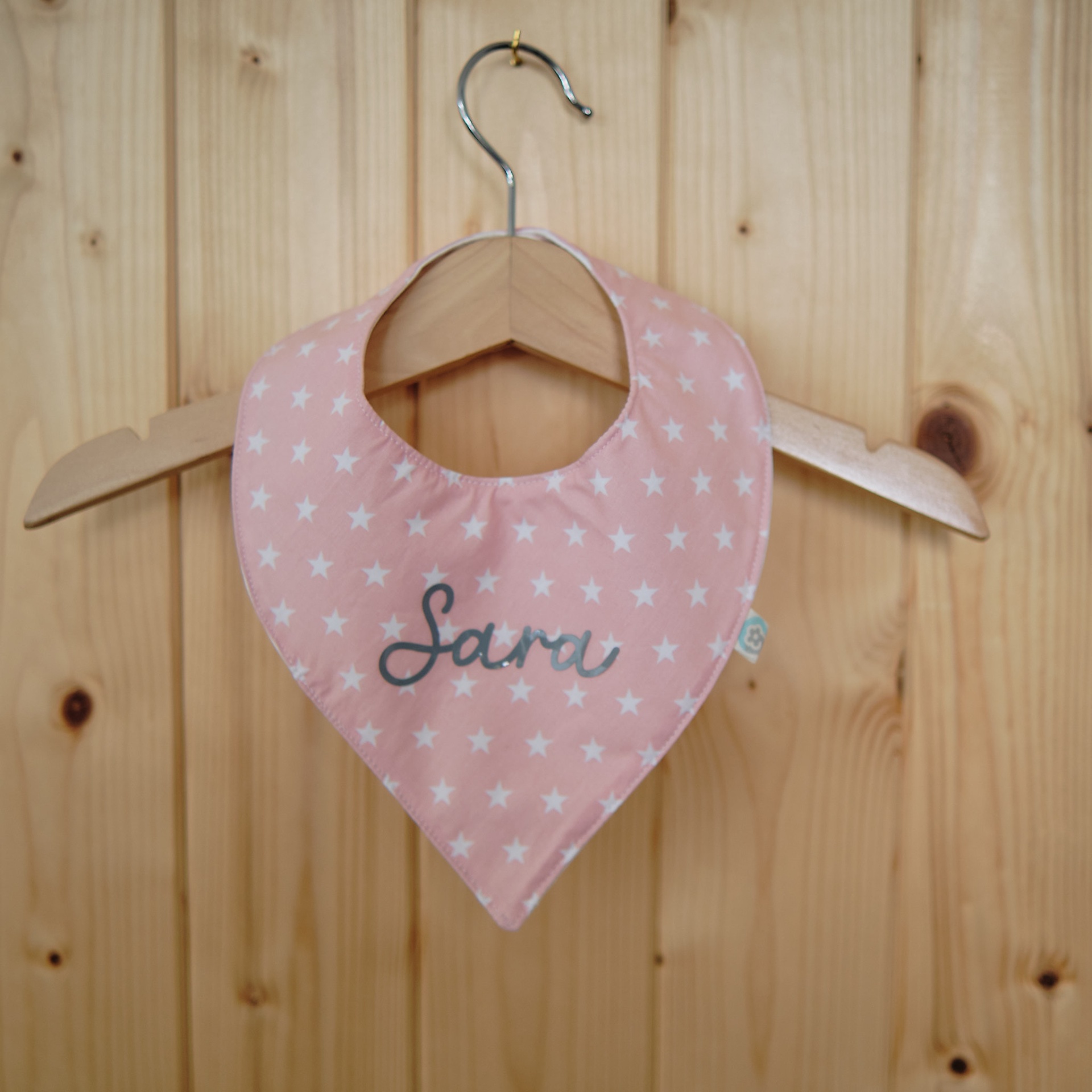 Personalize o babete com o nome do bebé estampado a vinil.