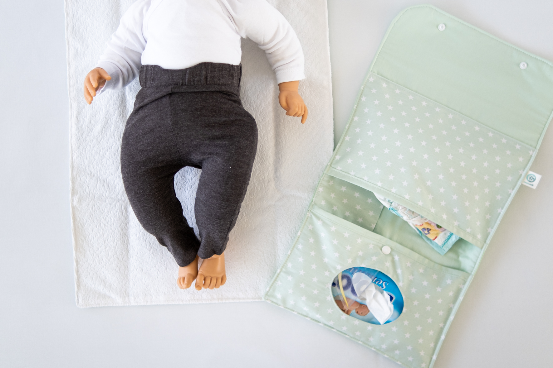 Uma bolsa que vale por 3: leva as toalhitas, as fraldas e a pomada, tudo o que precisa para a troca da fralda.