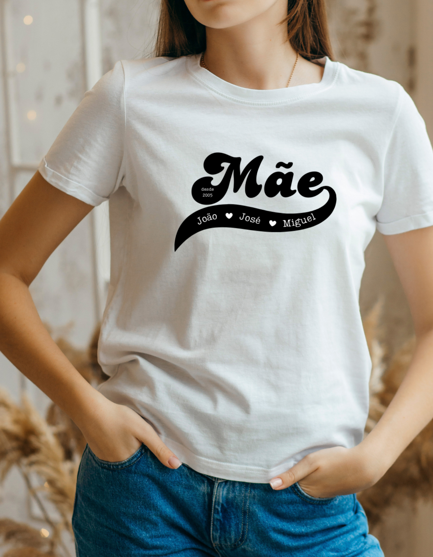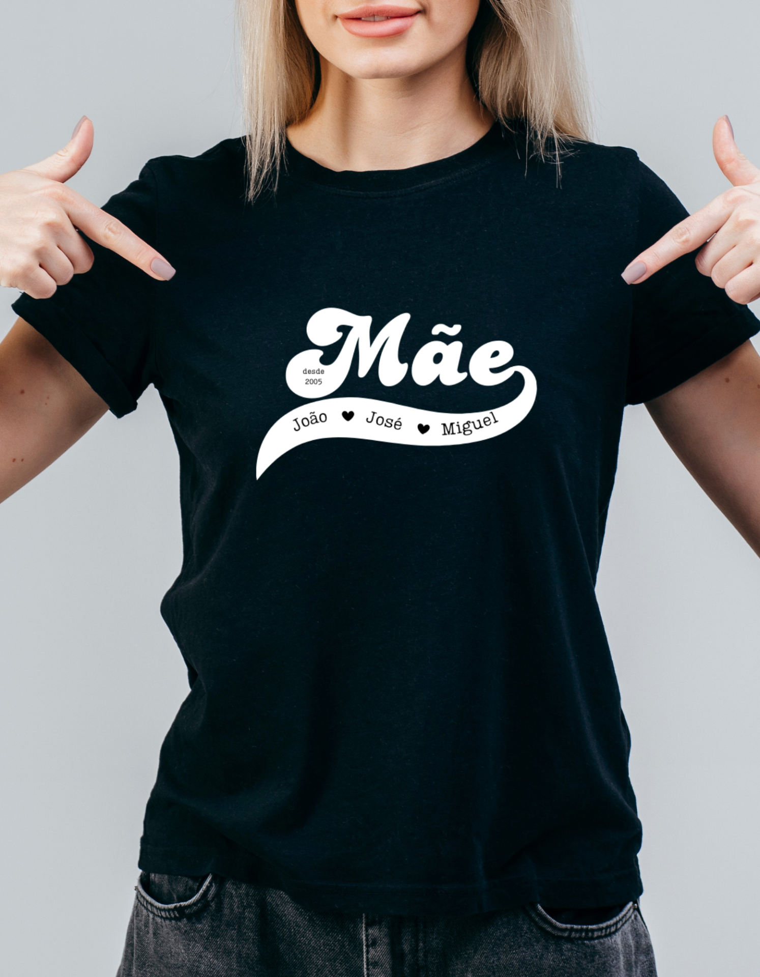Uma t-shirt única, linda, personalizada com a melhor equipa! Personalizamos com os nomes dos filhos, data do primeiro filho ou com as datas de nascimento. Dois designs disponíveis para se adaptar melhor ao estilo da mãe aí de casa.