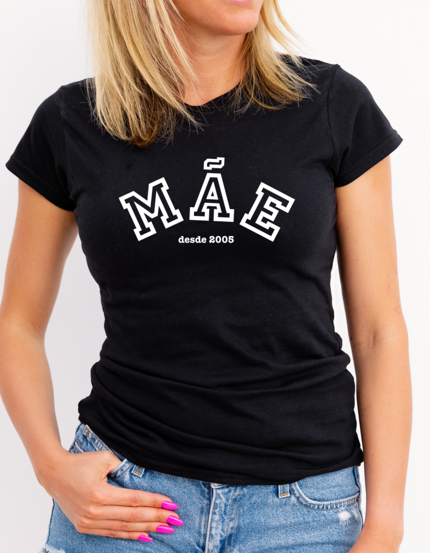 • T-shirt preta para mulher com estampa MÃE desde 2005