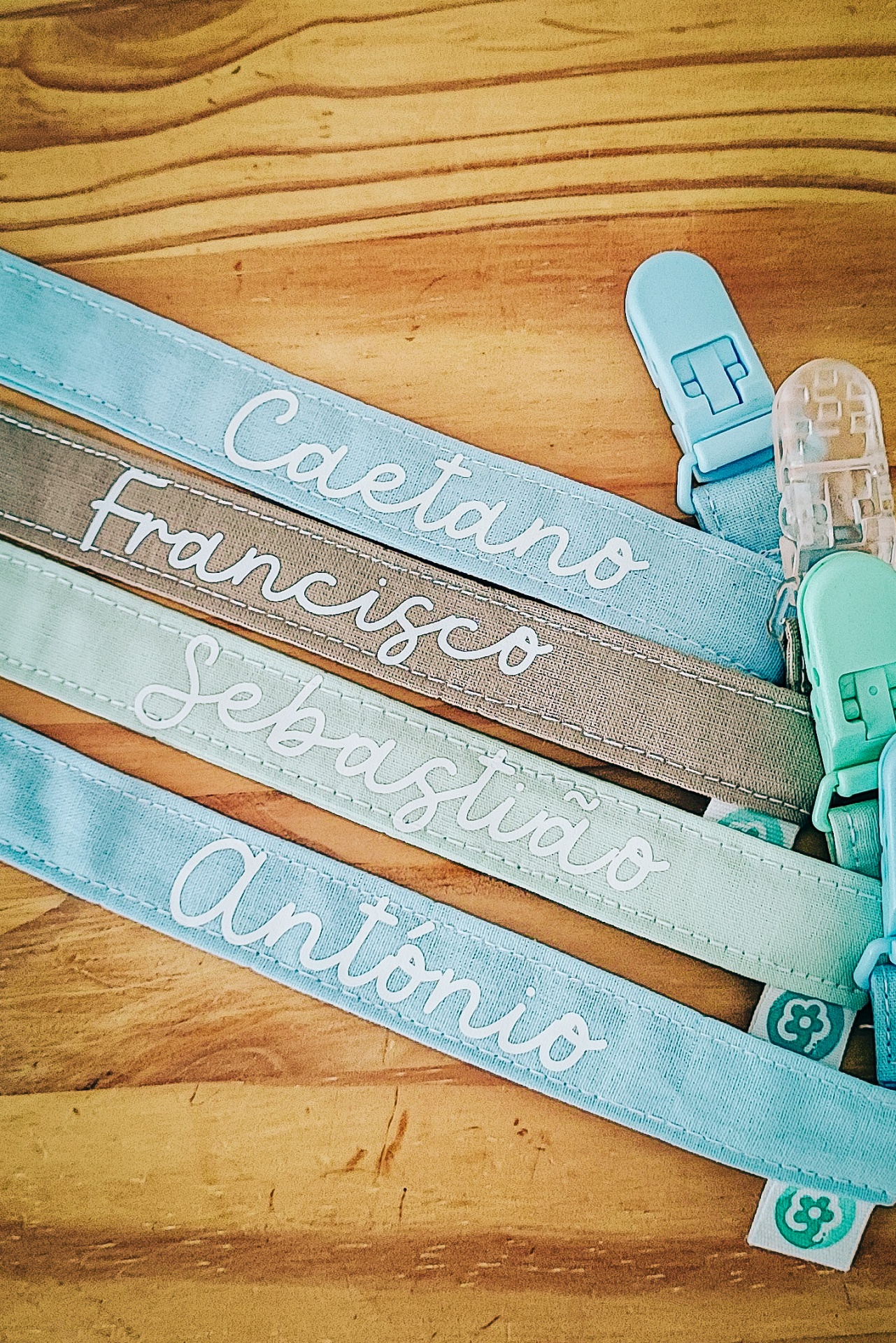 Personalize a fita com o nome do bebé estampado a vinil.