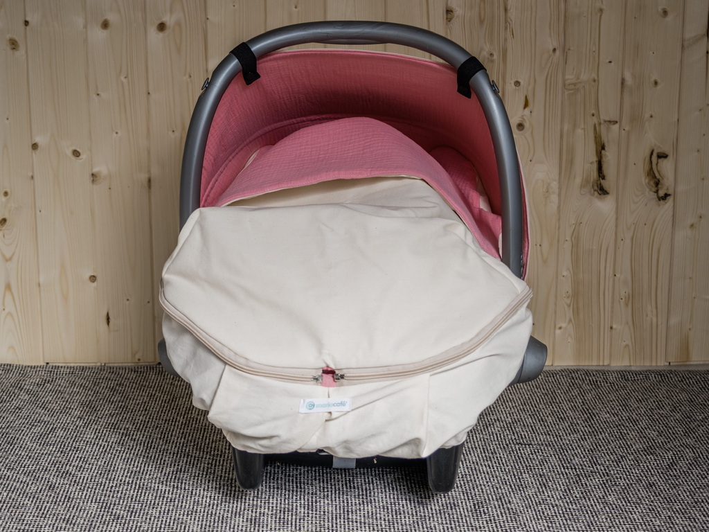 A forra universal para ovinho da Maria Café é adequada a qualquer época do ano. É feita em tecido 100% algodão, sendo por isso fresca e confortável. O tapa-pernas destacável OPCIONAL tem o interior em manta térmica, sendo por isso a protecção ideal nos dias mais frescos e ventosos. Quando retira o tapa-pernas fica com a forra base que é fresca e adequada aos dias mais quentes.