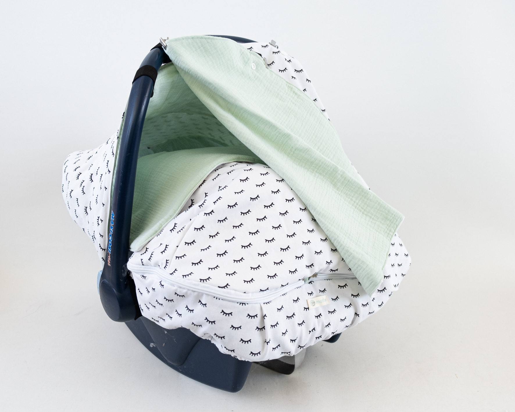 A capota OPCIONAL exclusiva criada pela Maria Café adapta-se à generalidade dos ovinhos. É feita em tecido 100% algodão, duplo para maior protecção. Além disso, tem a grande vantagem de deixar livre a pega do ovinho, permitindo segurá-lo pela pega e transportá-lo pendurado no braço.