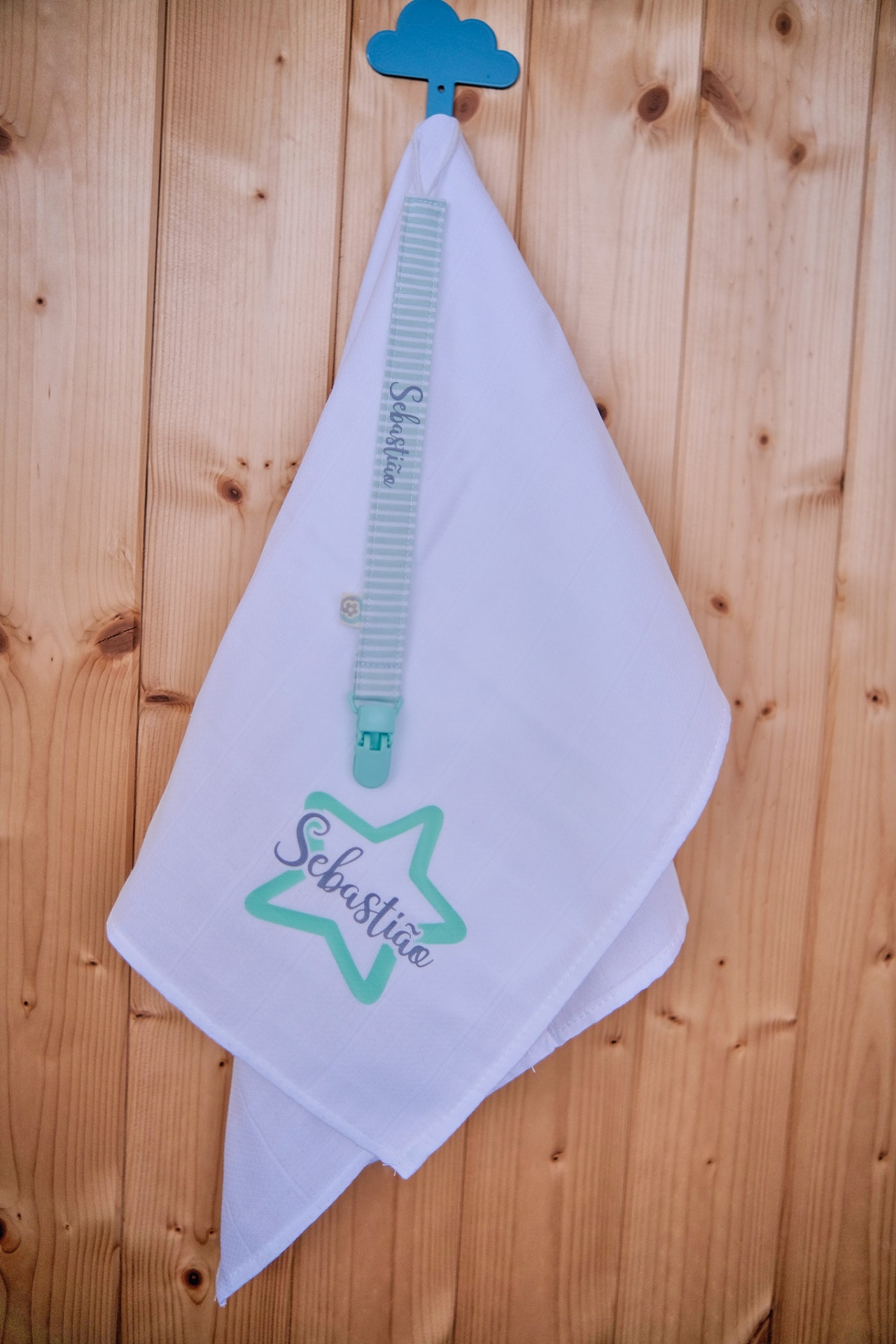 Estampada com vinil flex termoprensado com certificado Oekotex. Indique o a cor da estrela e o nome a estampar (cinza claro).
