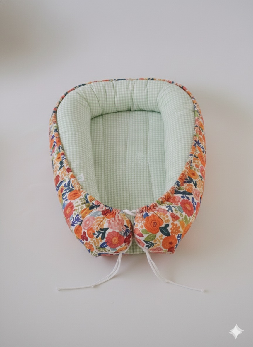 Disponível em 3 tamanhos (recém-nascido, de gémeos e XL), com ou sem casulo (saco-cama) feito à medida. Faça a sua seleção para saber o valor final e escolha o tecido interior do seu ninho.